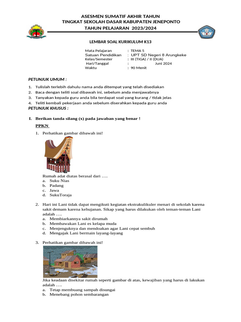 Penilaian Akhir Tahun (PAT) merupakan evaluasi penting bagi siswa kelas 3 SD untuk mengukur pemahaman mereka terhadap materi yang telah dipelajari sepanjang tahun ajaran. Tema 5 pada umumnya berfokus pada subtema yang berkaitan dengan lingkungan sekitar, kewargarnegaraan, atau keberagaman budaya. Soal PAT dirancang untuk menguji kemampuan siswa dalam berbagai aspek, mulai dari pemahaman bacaan, kemampuan berhitung, hingga penerapan pengetahuan dalam kehidupan sehari-hari. Artikel ini menyediakan contoh soal PAT kelas 3 tema 5 yang mencakup berbagai tipe soal dan materi, sehingga dapat digunakan sebagai bahan latihan dan referensi bagi guru dan siswa.
